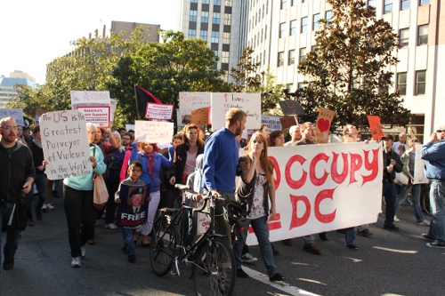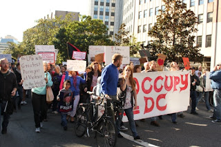 This month, I have been deeply involved in the Occupy movement here in Washington, DC. We launched Occupy DC at the beginning of October, and the following month has been one of strengthening, developing, and seeking to unify the movement into an effective force for change. My role in this process has changed over time. Early on, my focus was primarily on the work of facilitation – ensuring that our decision-making process was functioning properly. Once we got the facilitation team stabilized, I shifted my energies to outreach. I worked to develop ongoing efforts to reach out on behalf of Occupy DC, especially through direct leafleting on city streets.