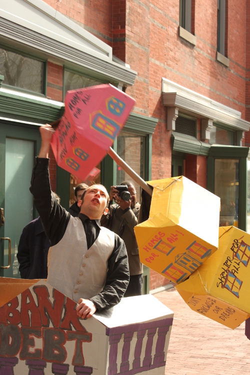 The Occupy Church is embracing the American Spring by focusing on a few areas where we believe we can make a real difference. One example is our partnership in foreclosure resistance with Occupy Our Homes DC. Working alongside homeowners and tenants in Prince George’s County, we have already helped to ensure that Bertina Jones – an accountant, grandmother, and pillar in her family and community – will be able to stay in her home, despite the unjust dealings of Bank of America and Freddie Mac. And we are just getting warmed up. Our ultimate goal is to build a base of ordinary citizens who are equipped to stand up to predatory banks.