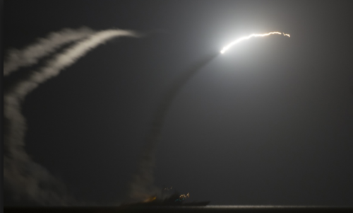 Politicians on both sides of the aisle who had long been pushing for military strikes in Syria cheered the president for dropping the bombs. News outlets that are normally critical of the president lined up to endorse this new war. The New York Times praised Trump for “following his instinct.” CNN’s Fareed Zakaria said that, with this attack on Syria, “I think Donald Trump became president of the United States.” MSNBC’s Brian Williams waxed poetic about the beauty of Tomahawk missiles. He quoted Leonard Cohen’s lyrics, “I’m guided by the beauty of our weapons.”
