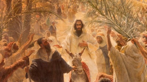 There was revolutionary expectation as Jesus rode into Jerusalem on a donkey, echoing Zechariah’s prophecy of a victorious messiah-king who would free Israel from foreign domination. People waved palm branches and threw down their coats in front of Jesus, reenacting the anointing of Jewish kings. They shouted praise: “Blessed is the king who comes in the name of the Lord!” All of Jerusalem was abuzz with the question: Could this Jesus be the one? Could he be the promised savior who would defeat the Romans and establish an independent Jewish state?